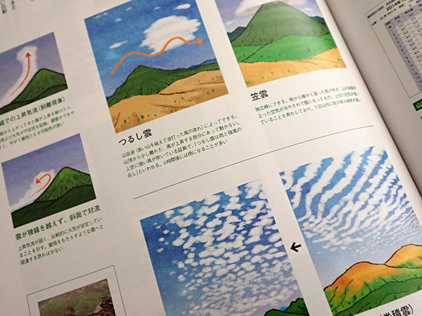 山と渓谷社 「単独行の教科書」特集「行動編」 山中のリスク、気象判断、ビバーク等のイラストを描かせていただきました。