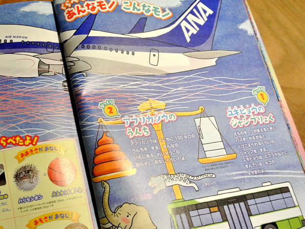 「くらべてびっくりずかん」の見開きイラストを描きました。