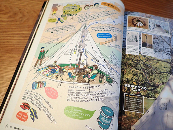 ワールド・フォトプレス モノスタイル アウトドアNo.7の特集『秋冬キャンプのススメ』 のイラストと家族総出演でお仕事させていただきました。 前半はTipi(ティピー)テントに薪ストーブを入れて過ごすキャンプと 後半は日帰りデイキャンプで秋のBBQを楽しむという二本立ての記事です。